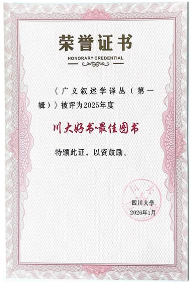 2026.03我院王欣教授领衔的团队成果《广义叙述学译丛(第一辑)》获2025年度川大好书·最佳图书